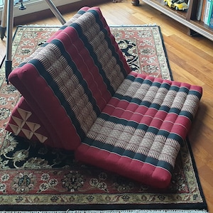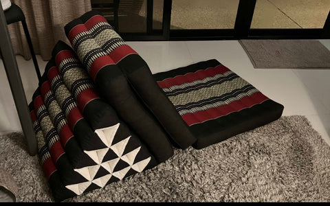 I ordered the brown/red XXL triangle cushion with the roll up mat because at my house we sit on the floor a lot. I love it so much, it was worth the wait! It was well packaged and arrived in great condition. Chiangmaicraft notified me when it shipped and provided tracking information in a timely manner. When I need another one, I will order from them again.