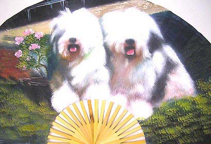 An artist at work handpainting a beautiful wall fan.All our folding fans are handpainted
