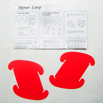The lampshade is a self assembly lighting system which is made up of interlocking quadrilaterals. Lampshades of various shapes and sizes can be constructed by linking together the identical elements. The standard light pack contains 30 modules but other packs are available, up to 120 modules. Jigsaw puzzle lampshades are available in a variety of sizes & colours. Full instructions included with every purchase.