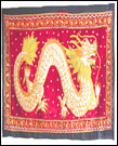 Padded dragon embroidered tapestry made from plush velvet, linen, silk, and cotton then adorned with plain and metallic threads, metal sequins, beads and glass "stones.".