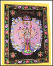 Padded embroidered tapestry of elephant, horse, peacock, singha and bird made from plush velvet, linen, silk, and cotton then adorned with plain and metallic threads, metal sequins, beads and glass "stones.".