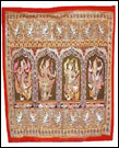 Padded embroidered tapestry made from linen, silk, velvet and cotton and adorned with plain and metallic threads, metal sequins, beads and glass "stones.".